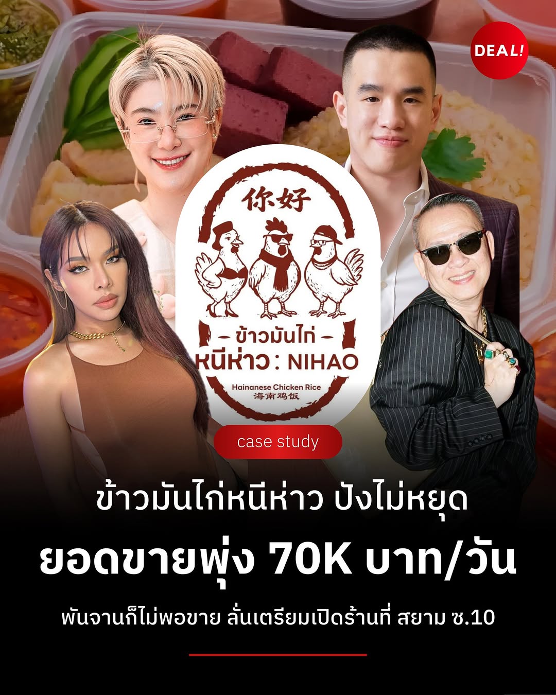 โดยราคาเริ่มต้นที่ข้าวมันไก่ธรรมดา ราคา 70 บาท, ข้าวมันไก่ทอด ราคา 80 บาท และ ข้าวมันไก่ไห่หนาน ราคา 129 บาท เพื่อตอบโจทย์ผู้บริโภคที่มองหาอาหารคุณภาพในราคาที่เข้าถึงได้ เปิดให้บริการผ่านเดลิเวอรีบนแอปพลิเคชัน LINE MAN ก่อนขยายสู่หน้าร้าน ล่าสุดได้เปิดให้ลูกค้าสามารถเข้ามานั่งรับประทานที่ร้านได้แล้วที่ สยามสแควร์ ซอย 10