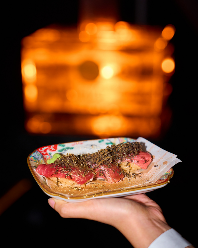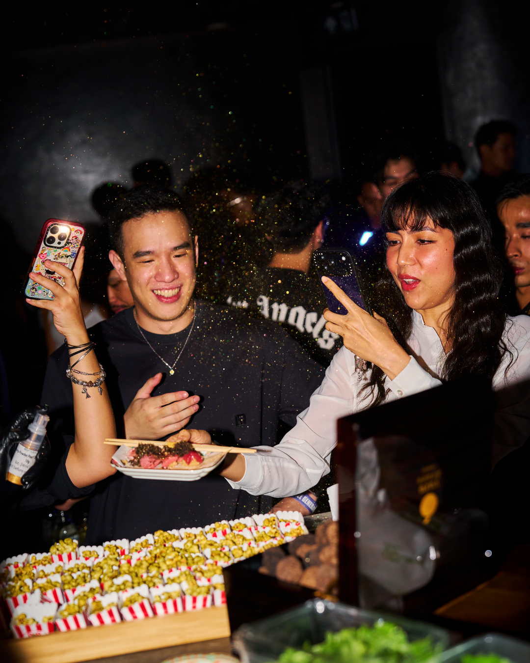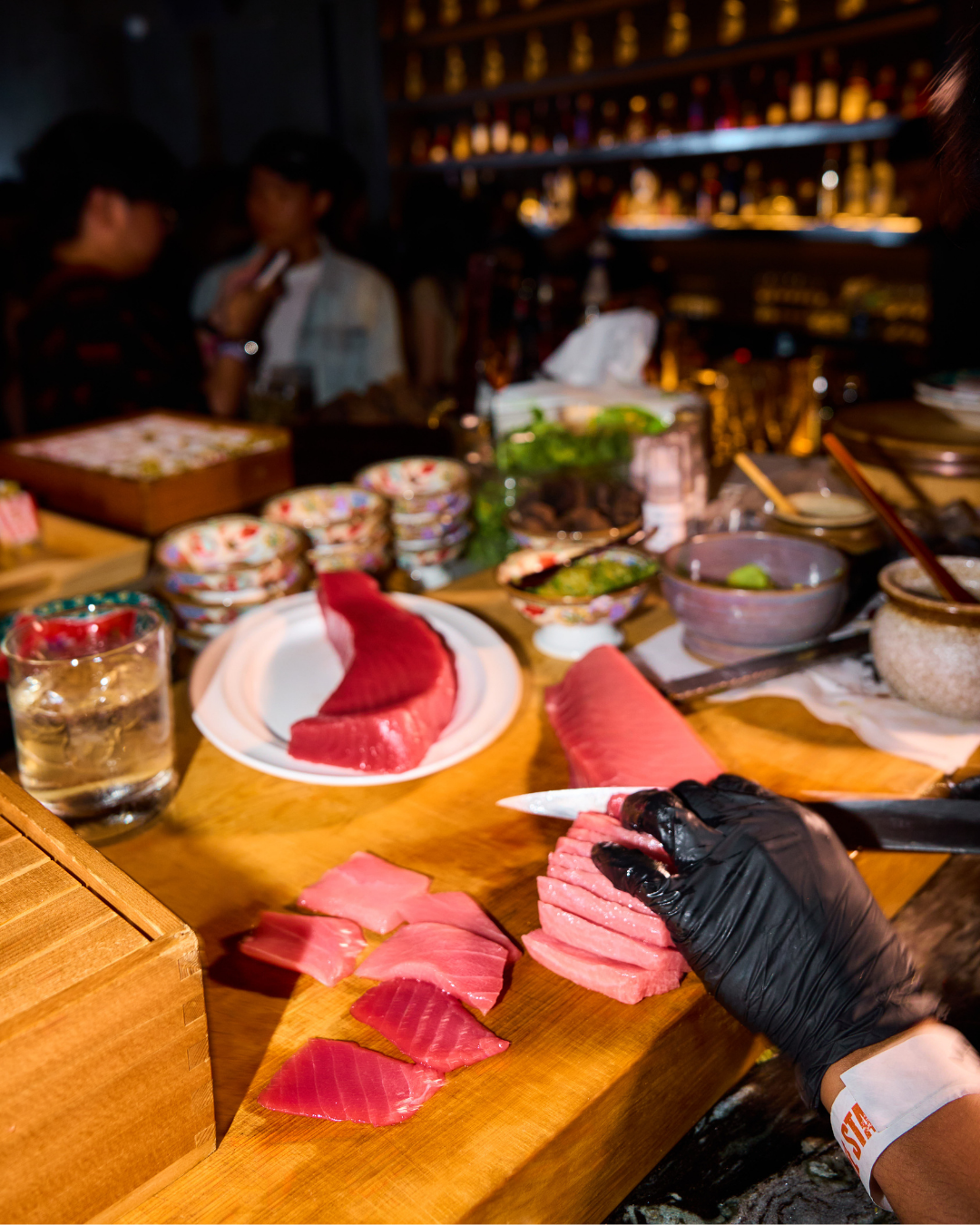 The menu that night reflected the same belief. Matcha Popcorn, made with ceremonial-grade matcha, was given out for free to welcome everyone. Golden Hon Maguro Sashimi and Hon Maguro Sushi with Truffle & Gold were prepared for those ready to go deeper. The same quality as every night at Siam Square — only the atmosphere was completely different.